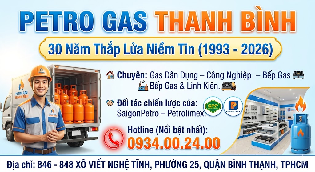 🔥 GAS THANH BÌNH – AN TOÀN CHO MỌI NHÀ, TIN CẬY CHO MỌI BẾP Với hơn 20 năm kinh nghiệm trong ngành năng lượng, Gas Thanh Bình tự hào là hệ thống bán lẻ LPG (Gas) hàng đầu tại TP.HCM. chúng tôi không chỉ bán Gas, chúng tôi mang đến Sự An Tâm và